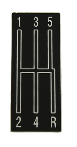 Updated version of original shift pattern for popular Tremec 5 speed conversions. Correct size, font and style emblem with 5 speed shift pattern over matte black background. Heavy Die-cast chrome plated emblem with raised numbers and pattern. Just like the original 4 speed emblem, including locating pins (can be easily removed for custom applications). Self adhesive backing for quick and easy installation. (will work for Richmond 5 speed transmissions)