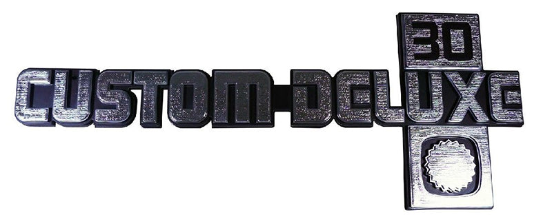 These Fender Emblems are an excellent choice for those looking to restore their classic 81-87 Chevy C/K Pickup to its original glory or simply enhance its appearance. The "Custom Deluxe 30" nameplate is a classic symbol of Chevrolet and adds a touch of vintage style to your vehicle.