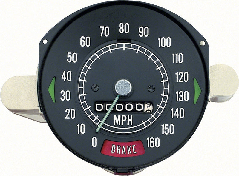Reproduction of the original 160 mph speedometer used on 1969 Firebird models without speed warning. Speedometer face is designed to duplicate the original in every detail. Correctly calibrated and ready to install. Includes LH and RH turn signal indicator and brake warning light provision.